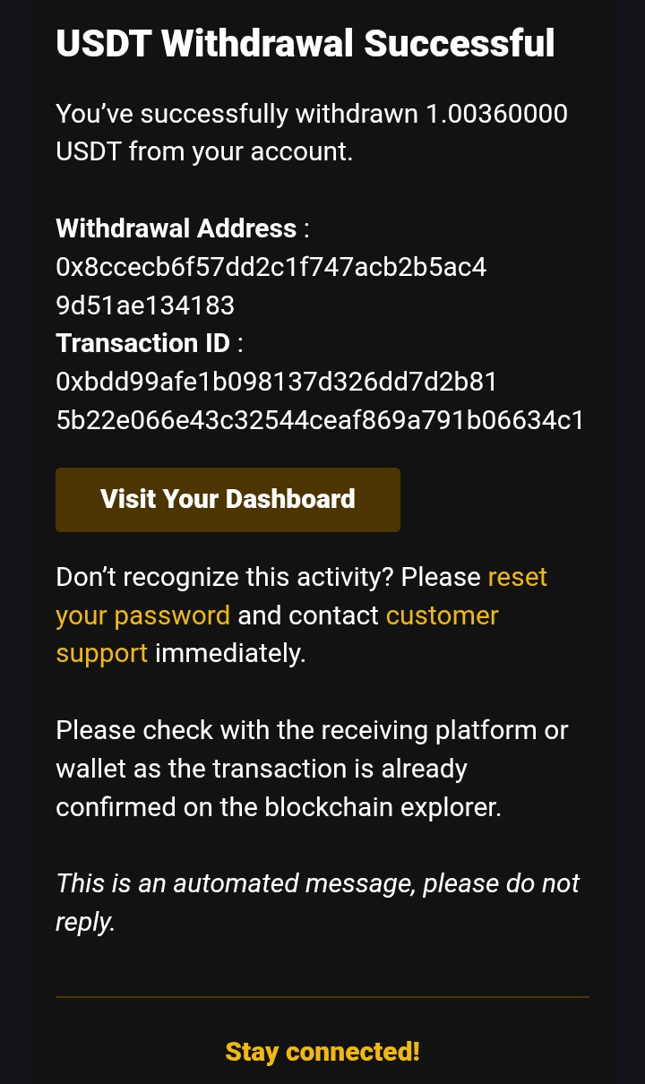 There is no need for login credentials or personal details beyond your wallet address. Your transaction remains private and secure, and your funds become available for use right away.
