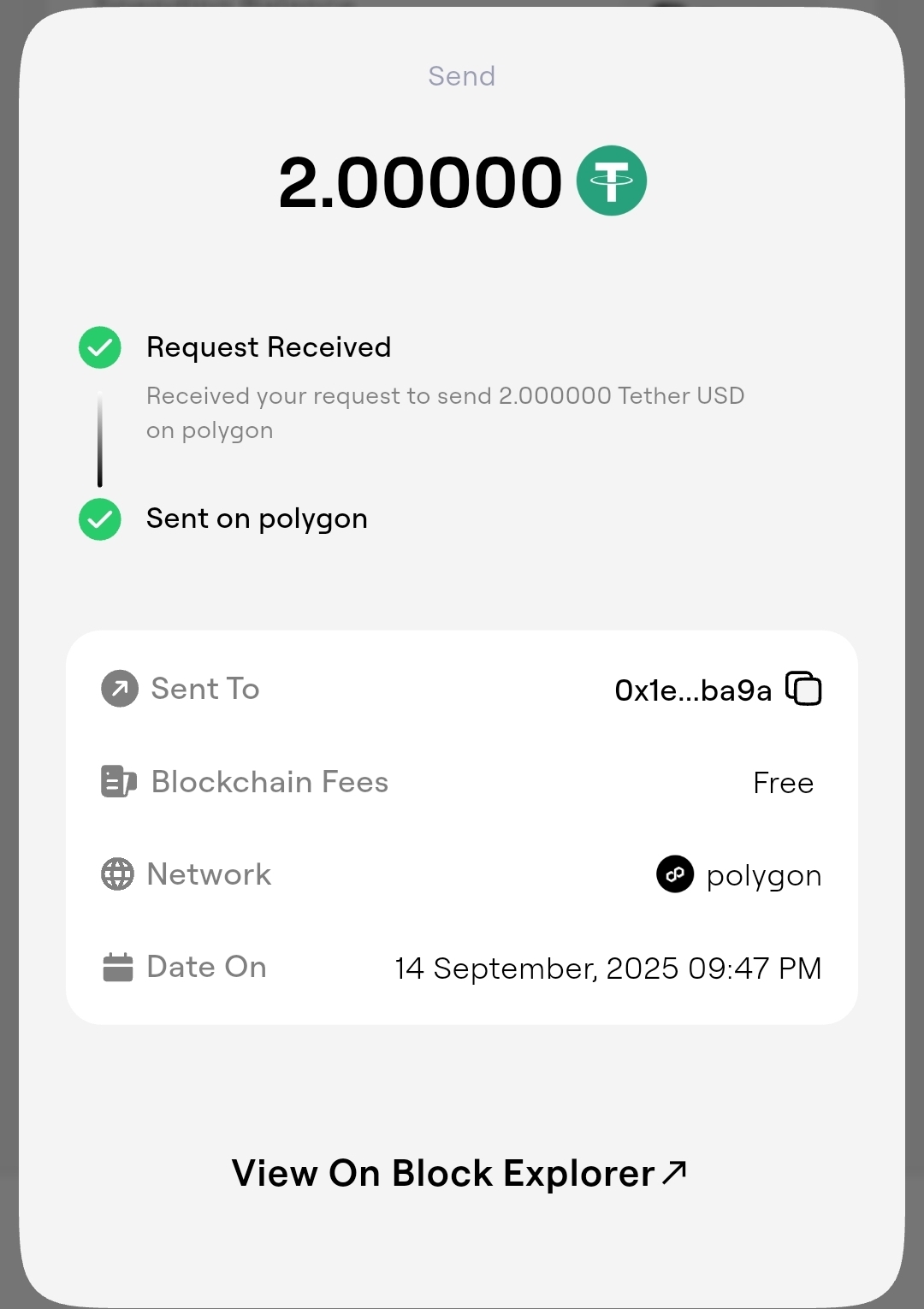 There is no need for login credentials or personal details beyond your wallet address. Your transaction remains private and secure, and your funds become available for use right away.
