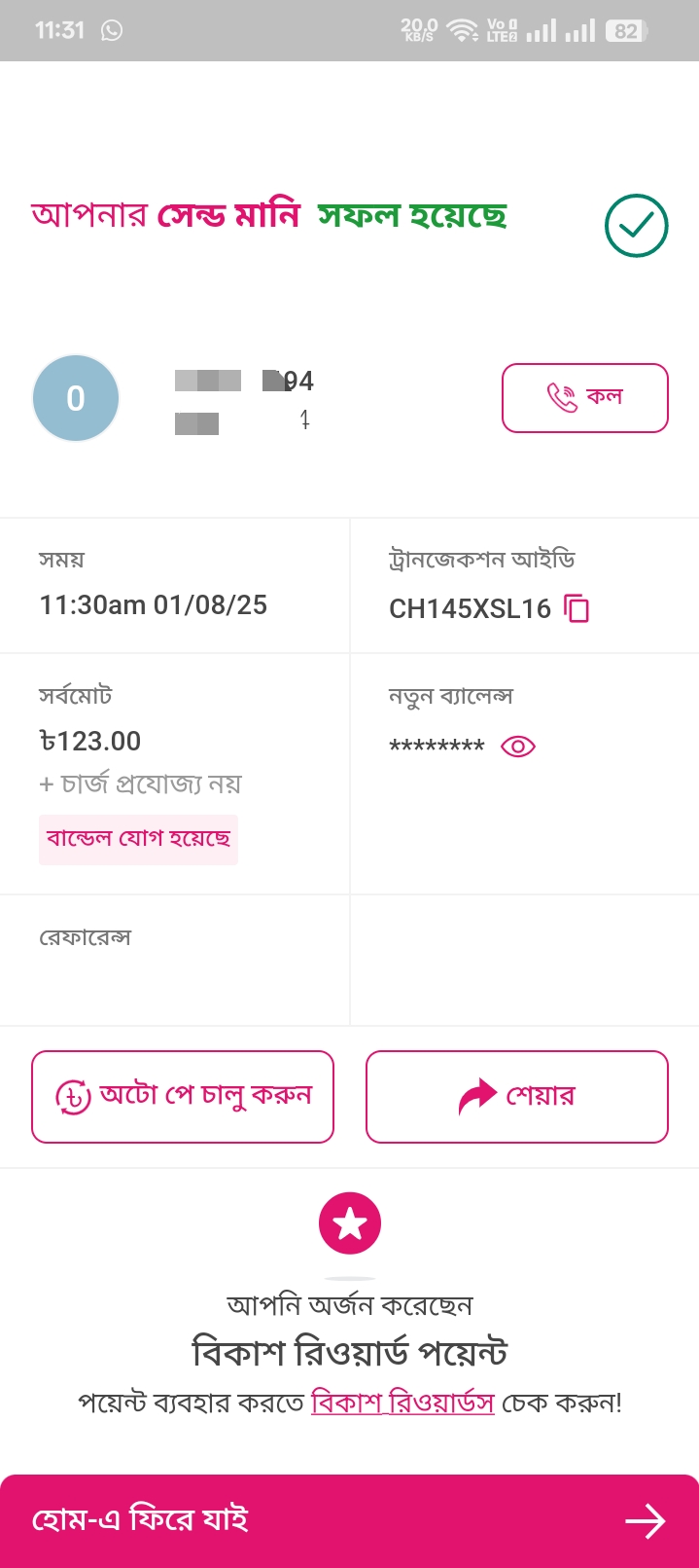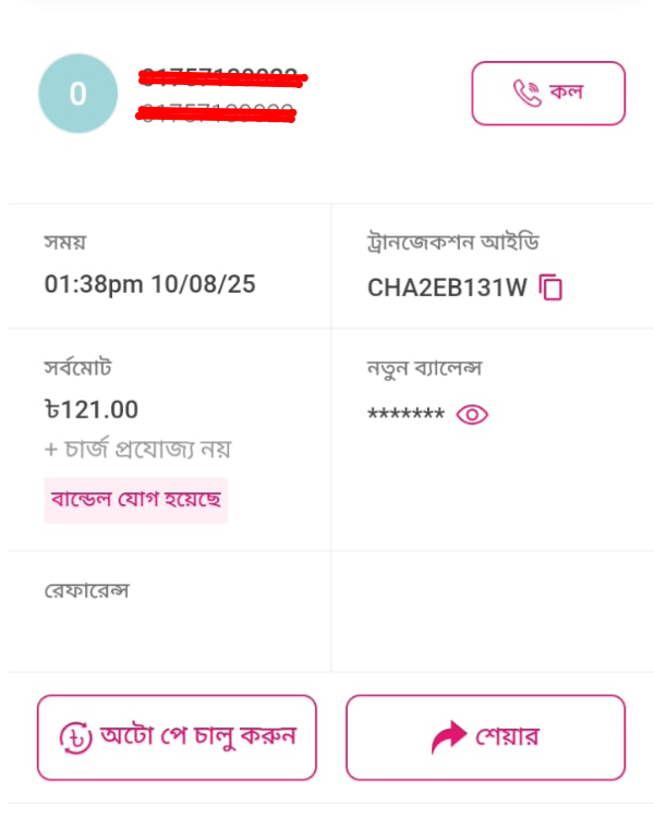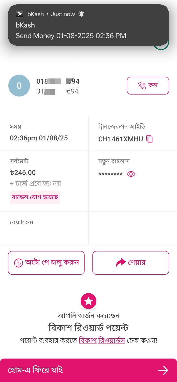• bKash (personal numbers only)