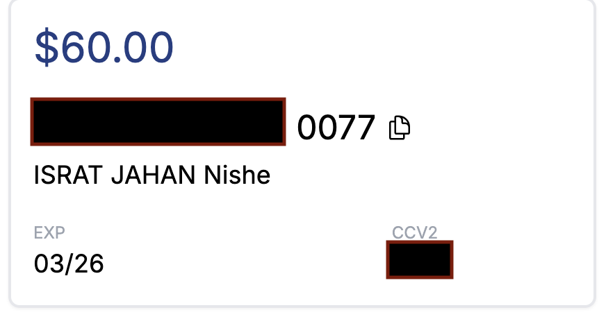Use your Virtual Visa Card on any online platform that accepts Visa. Just enter the card number, expiry date, and CVV to complete transactions.