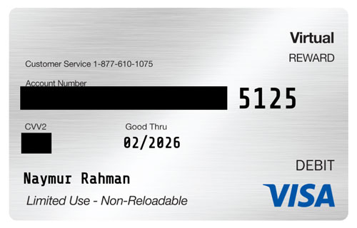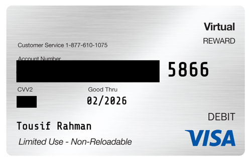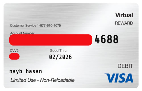 The latest price of Virtual Visa Card in Bangladesh is BDT 1,080.00. You can buy the Virtual Visa Card at the best price from our Card Zone BD or visit Card Zone BD Office.